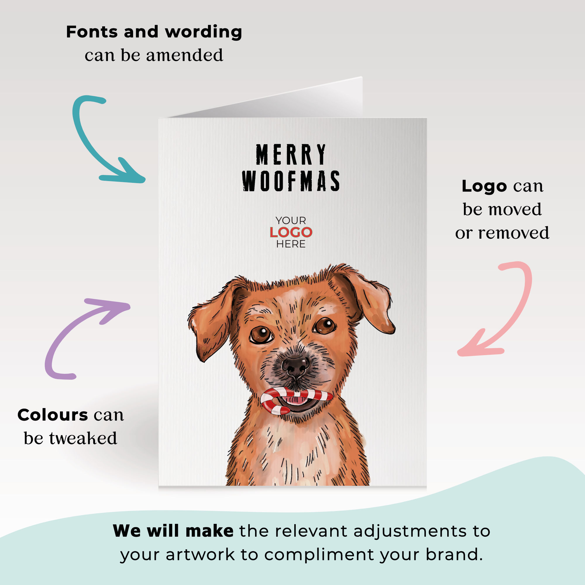 Spread festive cheer with this charming Corporate Christmas card, featuring a playful dog with a candy cane. Full of holiday spirit, this design is perfect for sending warm Christmas wishes to clients, colleagues, or business partners. A fun and heartwarming way to celebrate the season, this card adds a personal touch to your corporate greetings. Customise it with your company logo for a professional and memorable finish.