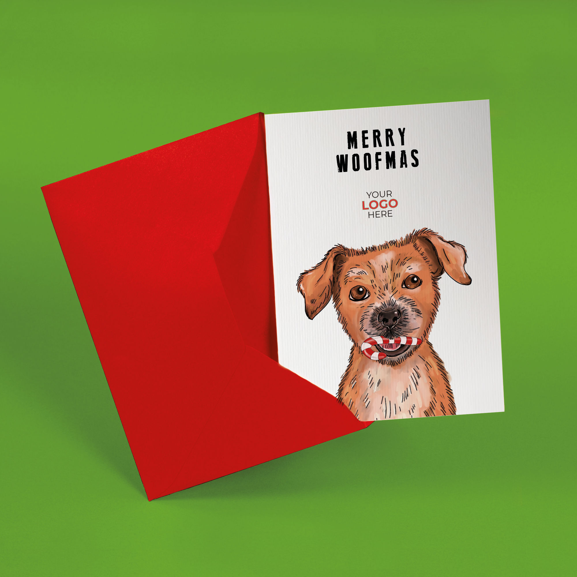 ‘Dog & Candy Cane’ Personalised Company Christmas Cards