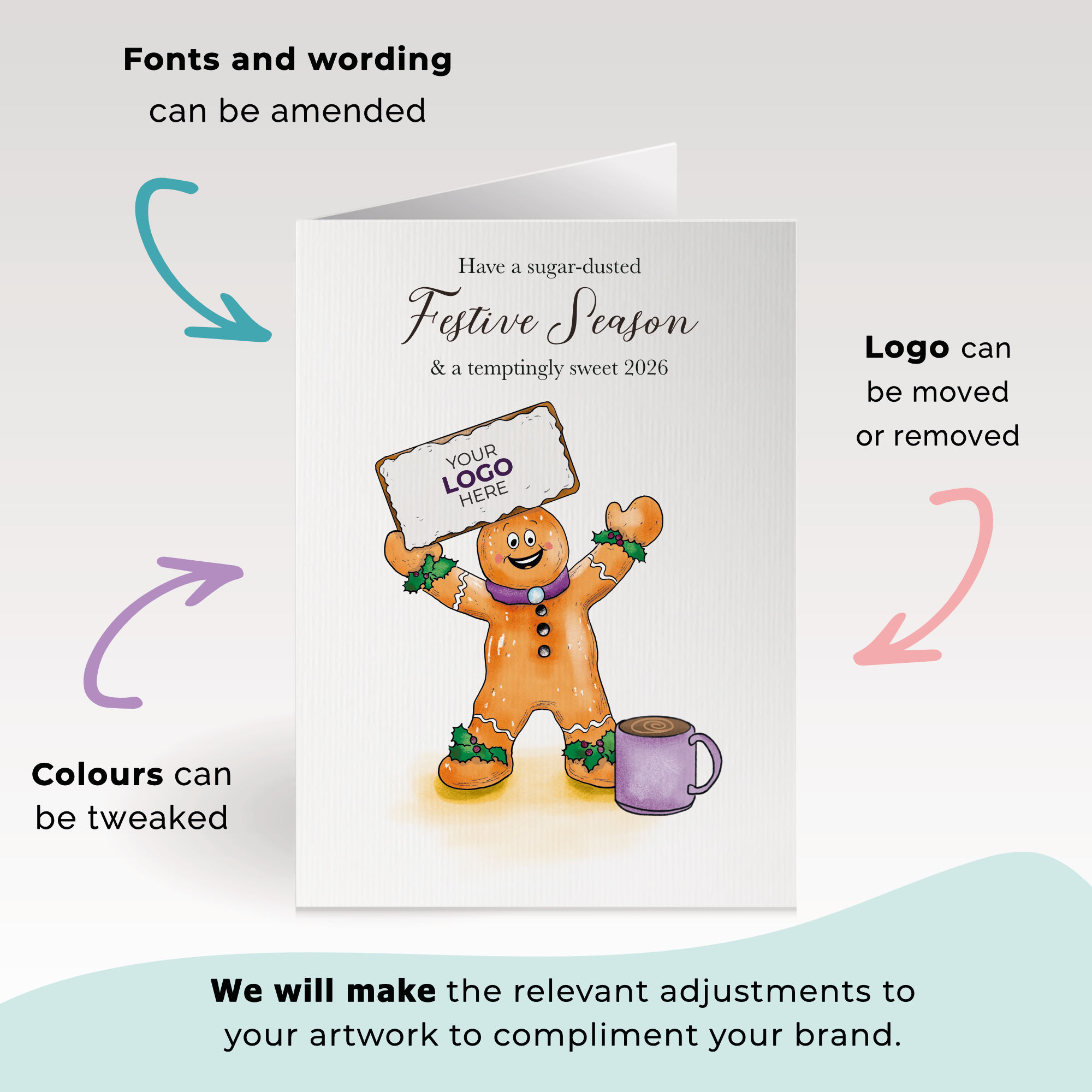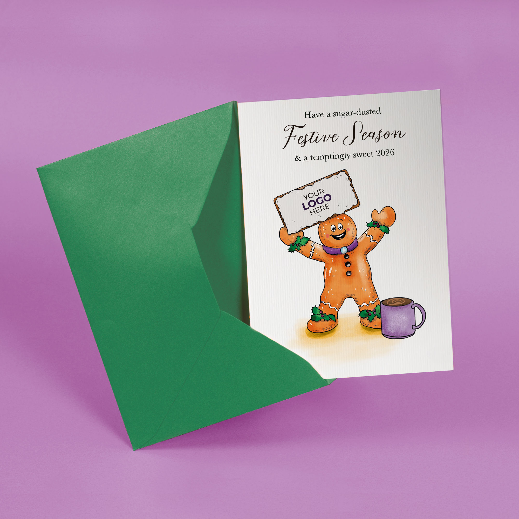 ‘Gingerbread Man & Mug’ Personalised Company Christmas Cards